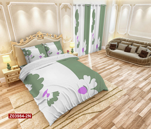 روتختی دونفره طرح گل دو رنگ سبز و سفید مینیمال جدید