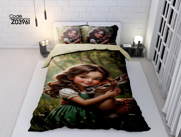 روتختی یکنفره طرح کودک دخترک و آهو کد Z03961
