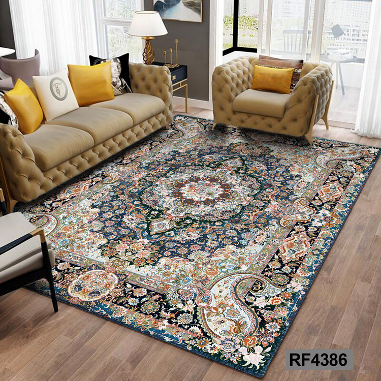 فرشینه مخمل شانل ابی چندرنگ گلدار RF4386