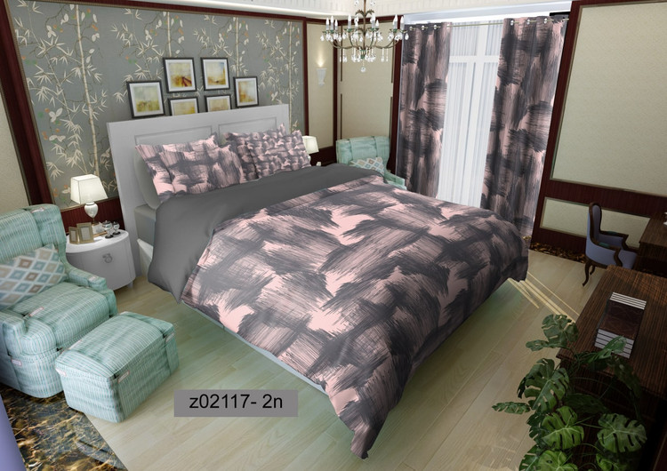 روتختی دونفره و یکنفره آبرنگی طوسی صورتی کد Z02117