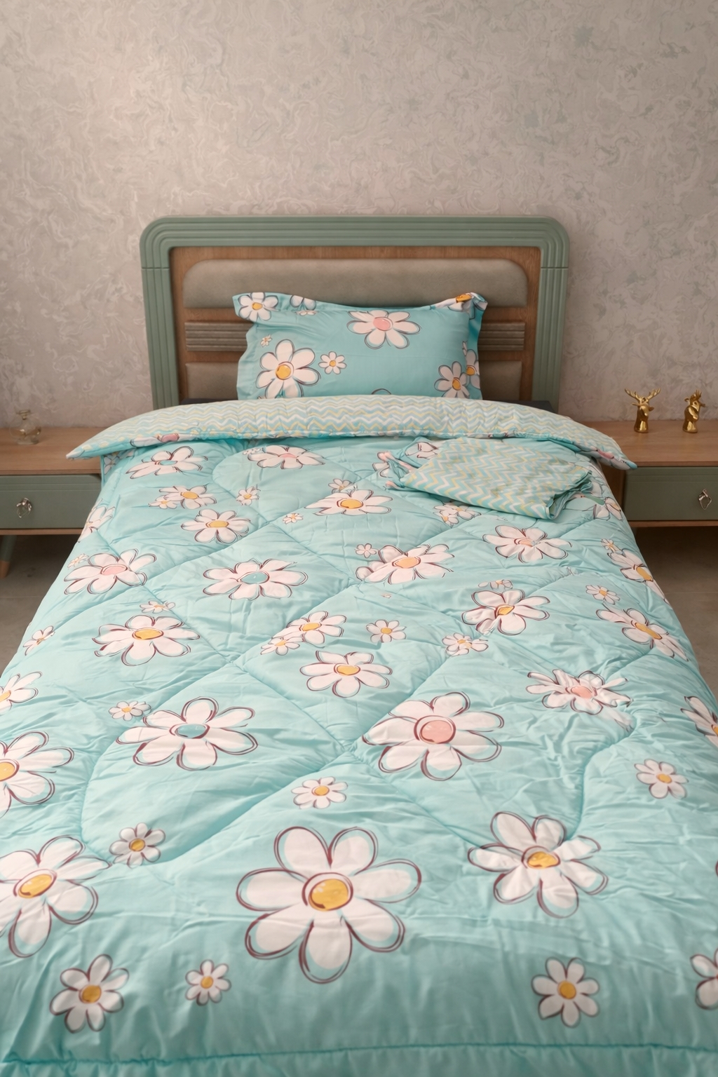 رو تختی های ۱ نفره ی میکرو شامل ۱ عدد لحاف ملافه و دو عدد رو بالشی.