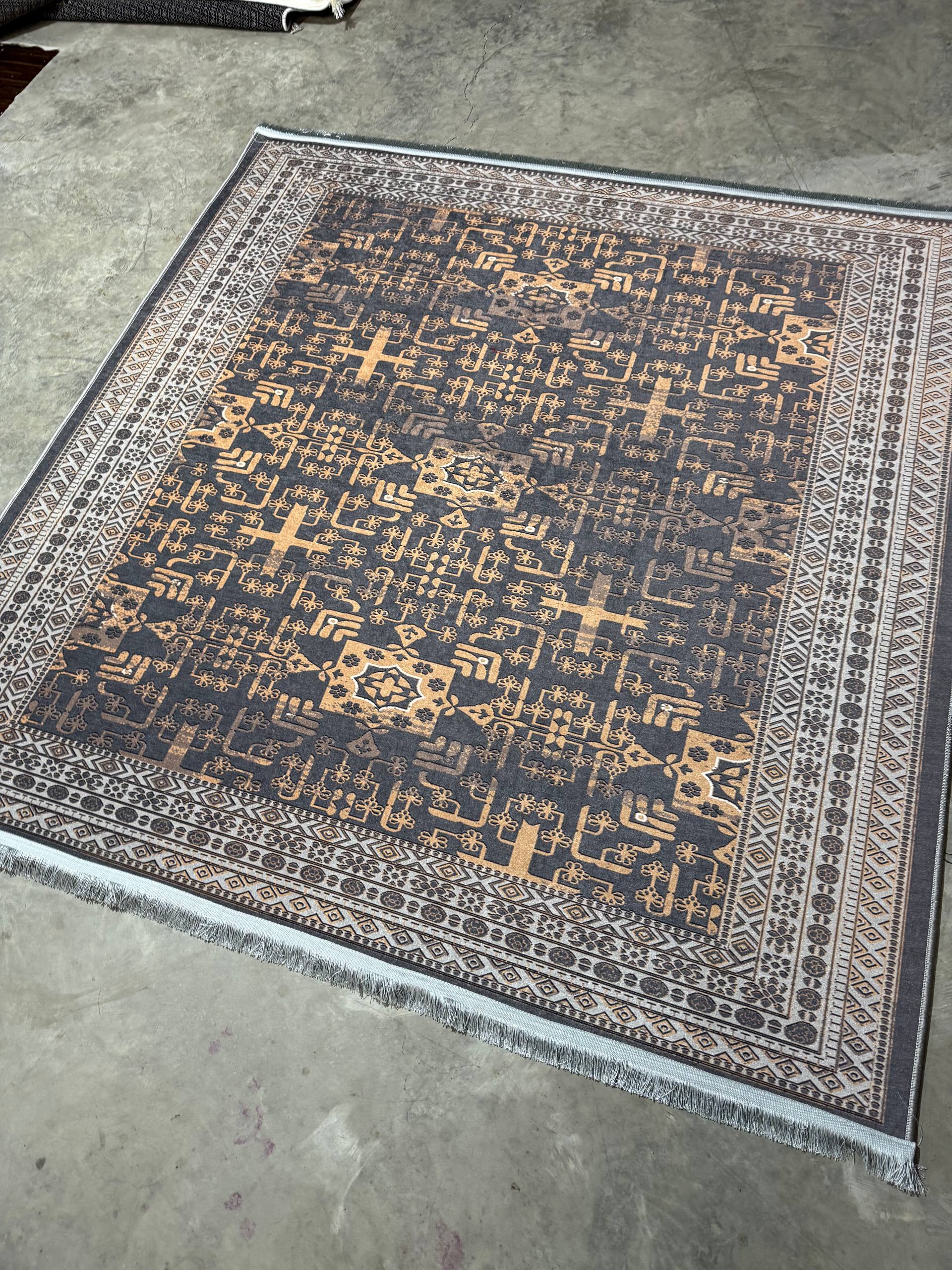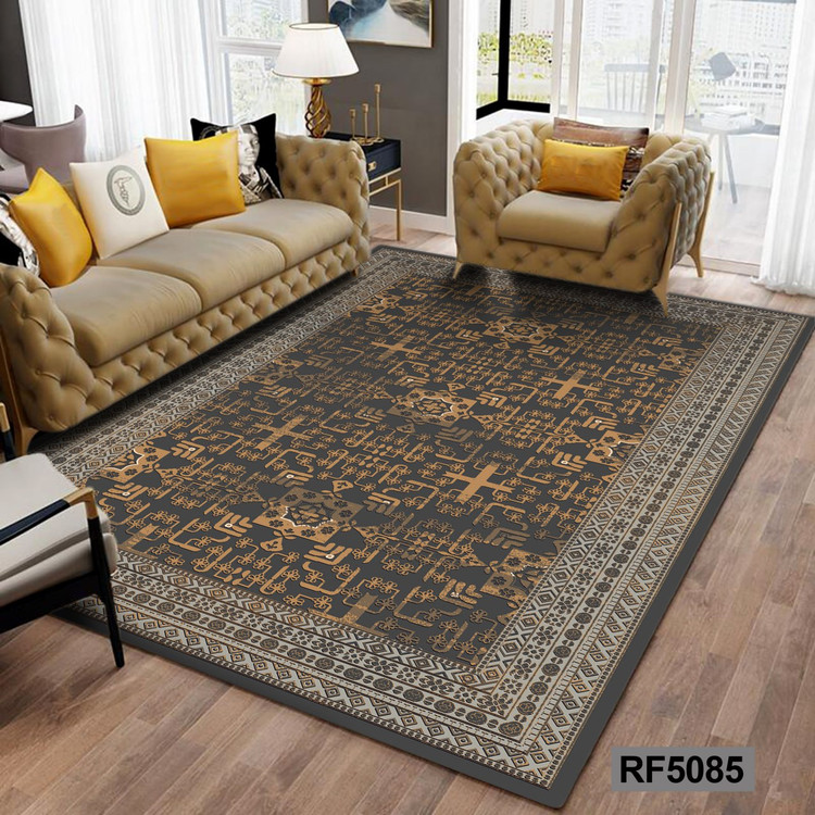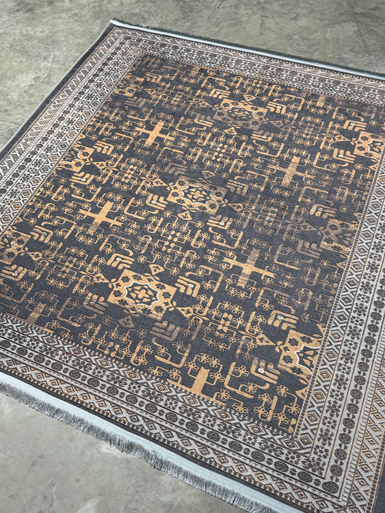 فرشینه طرح سنتی تیره با نقوش هندسی کلاسیک
