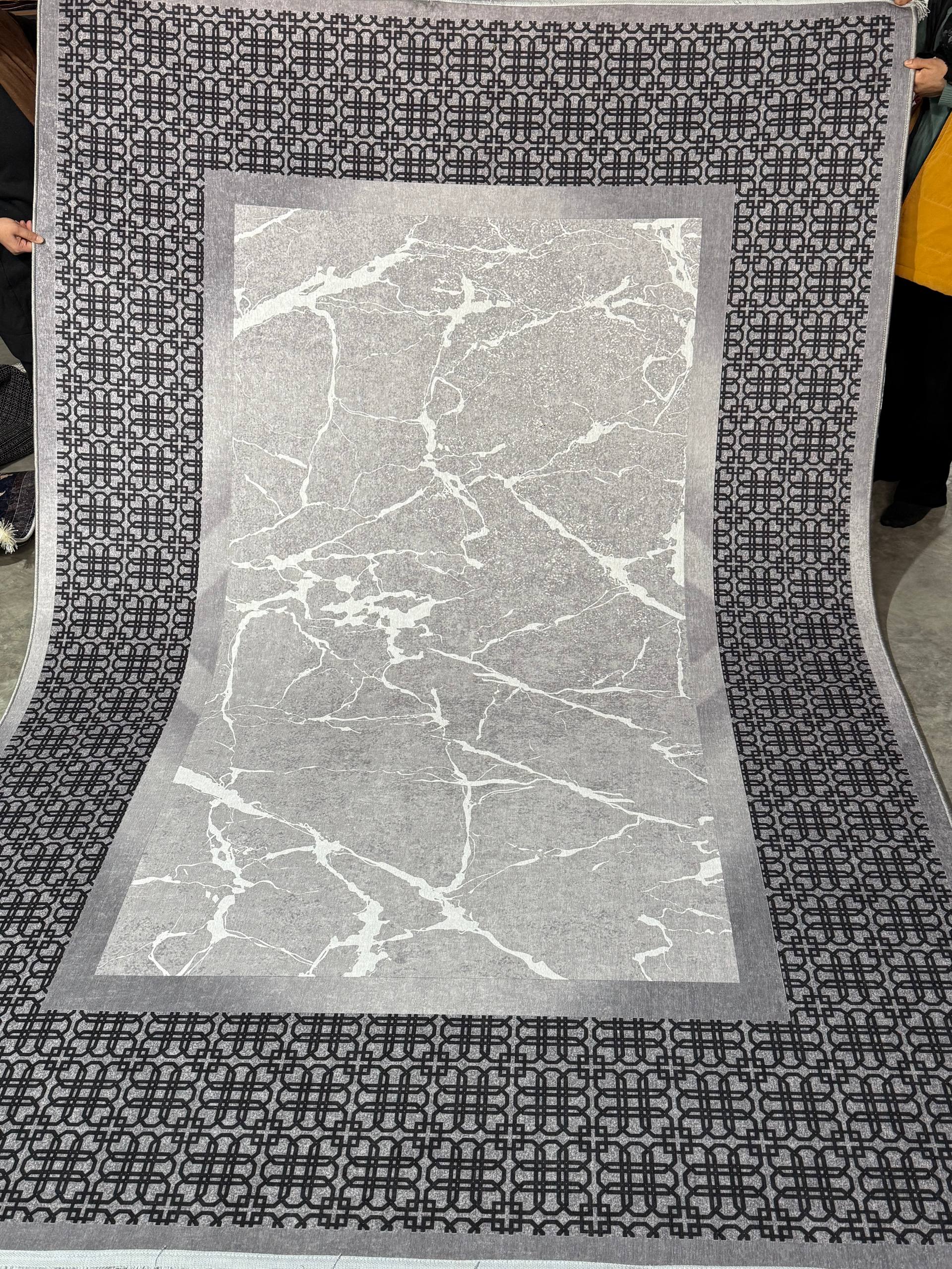 فرشینه طوسی طرح سنگ مرمر با حاشیه هندسی مدرن
